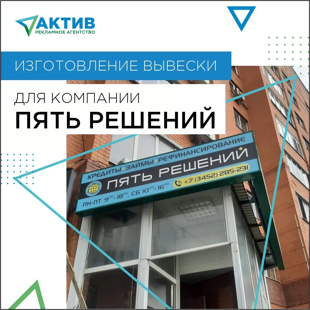 Вывеска для компании "ПЯТЬ РЕШЕНИЙ" в {town:pr}